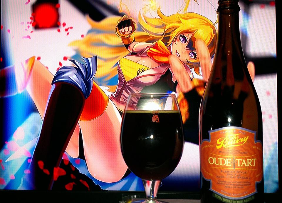 Yang Xiao Long and her sister Ruby Rose from RWBY were used in this pairing since I used Yang in the last pairing. Because of the fact that they are sisters, putting them together is like adding the cherries to Oude Tart. Ruby Rose, ofcourse is the cherry here. They are an awesome team. I wanted to show how the beer tends to be a splash of fruity flavors as you can see Ruby jumping in to add that layer of complexity.