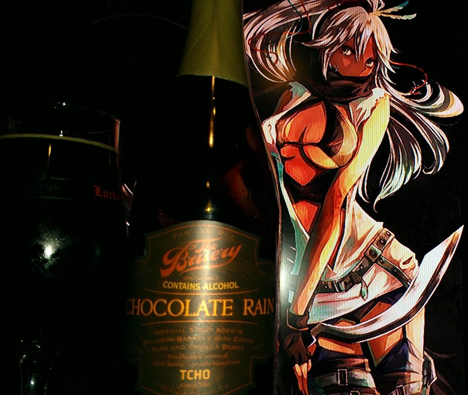 Chocolate Rain (2014 Release) by the Bruery is an 18.5% ABV Imperial Stout aged in Bourbon Barrels with TCHO Cacao Nibs and Vanilla Beans.