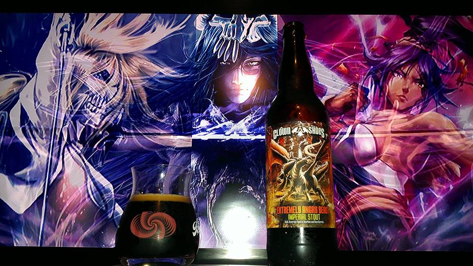 Tia Harribel, Nelliel Tu Odelschwanck, Yoruichi Shihouin and Matsumoto Rangiku from Bleach have always represented some aspect of the clown shoes beers in my past reviews. Tia is the Undead Party Crasher/Vampire Slayer. Nelliel has always been the original Unidragon and Yoruichi would be added for good measures since the Porcine Unidragon came out. This time she represents the Barleywine. The blend of each beer together and the unleash of the Extremely Angry beast can be best represented when all three together are looking like bad asses powering up to team up against great foes. The other thing though is since Tia also represented the Hammer of Holy, in this instance she unleashes pure fury so all three battle it out in this bottle. It really kicks ass. The strength and complexity has come together very epically that I could not think of any other pairing artwork that would be the best representative of this beer. Also I included Matsumoto Rangiku as an extra to be Rum.
